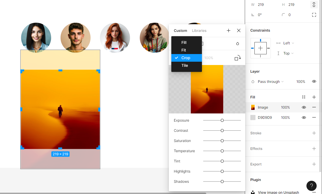 이미지들의 원본이 대부분 크기 때문에 사각형을 먼저 만들어주고 이미지를 불러오는 것이 나중에 이미지 크기를 조절하기에 더 편할 것이다. 이후에 Fill에서 원하는 이미지 부분 혹은 크기를 조절할 수 있다.