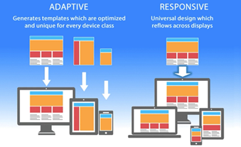 Adaptive: 제품마다 디자인을 따로. 컴퓨터, 태블릿, 워치 등등 다 따로 제작.