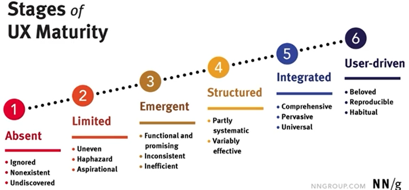 - UX관련 작업이 기능하기 시작하고 발전 가능성이 있지만 일관성이 없고 비효율적으로 수행됨